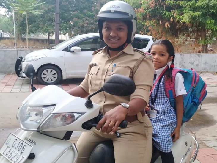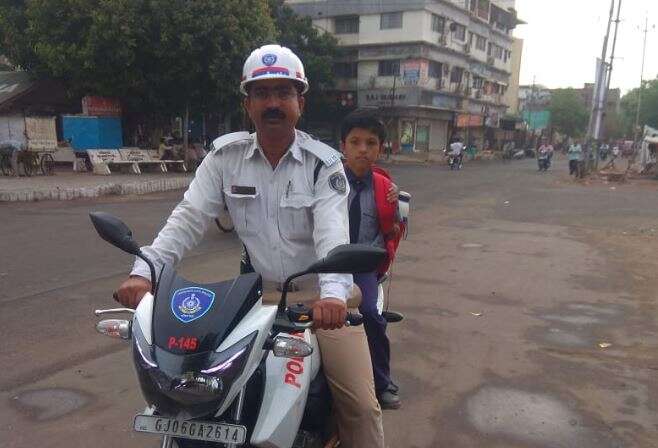 ટ્રાફિક પોલીસ બાળકોને મૂકવા જવા માટે વાલીઓની મદદે