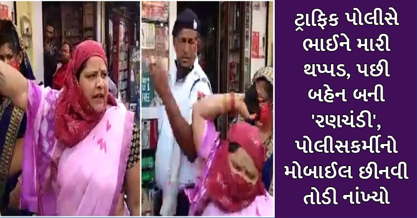 ટ્રાફિક પોલીસે ભાઈને મારી થપ્પડ, પછી બહેન બની ‘રણચંડી’, પોલીસકર્મીનો મોબાઈલ છીનવી તોડી નાંખ્યો