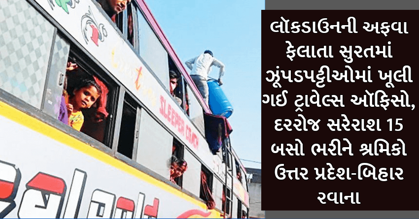 લૉકડાઉનની અફવા ફેલાતા સુરતમાં ઝૂંપડપટ્ટીઓમાં ખૂલી ગઈ ટ્રાવેલ્સ ઑફિસો, દરરોજ સરેરાશ 15 બસો ભરીને શ્રમિકો ઉત્તર પ્રદેશ-બિહાર રવાના