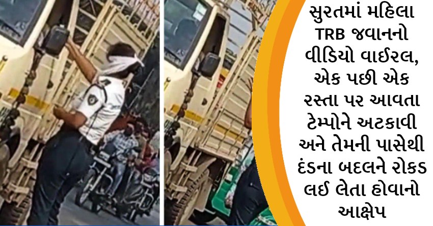 સુરતમાં મહિલા TRB જવાનનો વીડિયો વાઈરલ, એક પછી એક રસ્તા પર આવતા ટેમ્પોને અટકાવી અને તેમની પાસેથી દંડના બદલને રોકડ લઈ લેતા હોવાનો આક્ષેપ