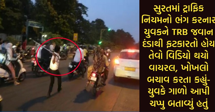 સુરતમાં ટ્રાફિક નિયમનો ભંગ કરનાર યુવકને TRB જવાન દંડાથી ફટકારતો હોય તેવો વિડિયો થયો વાયરલ, ખોખલો બચાવ કરતા કહ્યું- યુવકે ગાળો આપી ચપ્પુ બતાવ્યું હતું