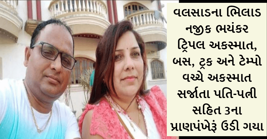 વલસાડના ભિલાડ નજીક ભયંકર ટ્રિપલ અકસ્માત, બસ, ટ્રક અને ટેમ્પો વચ્ચે અકસ્માત સર્જાતા પતિ-પત્ની સહિત 3ના પ્રાણપંખેરૂં ઉડી ગયા