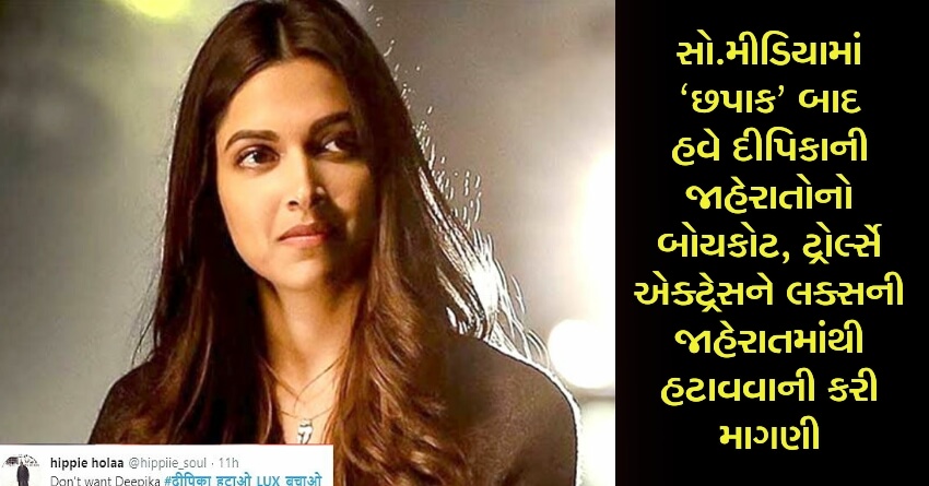 સો.મીડિયામાં ‘છપાક’ બાદ હવે દીપિકાની જાહેરાતોનો બોયકોટ, ટ્રોર્લ્સે એક્ટ્રેસને લક્સની જાહેરાતમાંથી હટાવવાની કરી માગણી