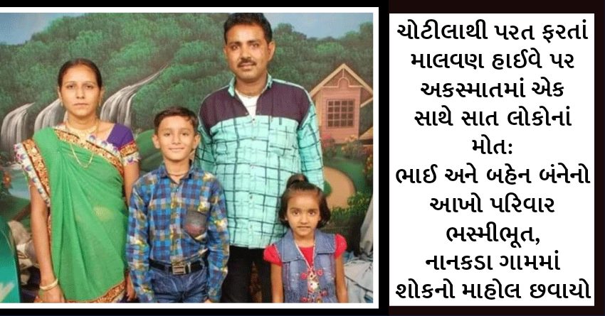 ચોટીલાથી પરત ફરતાં માલવણ હાઈવે પર અકસ્માતમાં એક સાથે સાત લોકોનાં મોત: ભાઈ અને બહેન બંનેનો આખો પરિવાર ભસ્મીભૂત, નાનકડા ગામમાં શોકનો માહોલ છવાયો