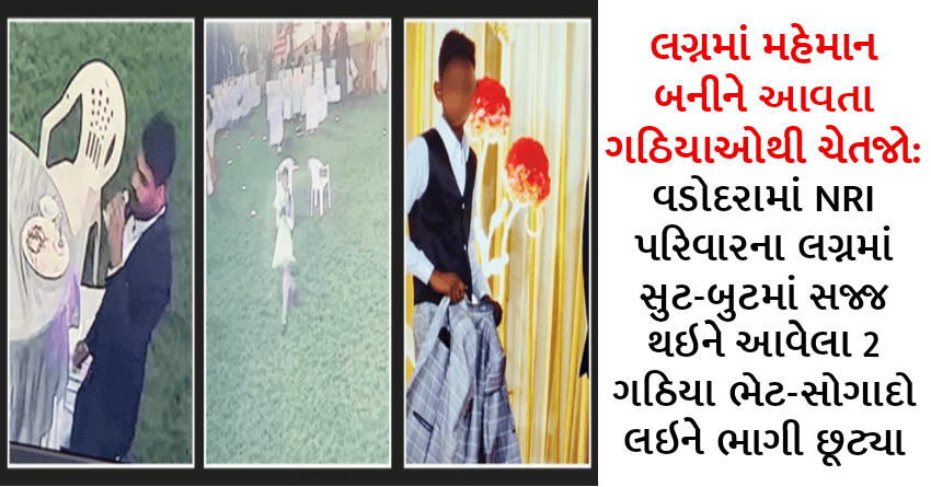 લગ્નમાં મહેમાન બનીને આવતા ગઠિયાઓથી ચેતજો: વડોદરામાં NRI પરિવારના લગ્નમાં સુટ-બુટમાં સજ્જ થઇને આવેલા 2 ગઠિયા ભેટ-સોગાદો લઇને ભાગી છૂટ્યા