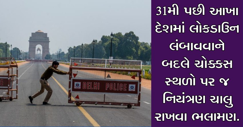 31મી પછી આખા દેશમાં લોકડાઉન લંબાવવાને બદલે ચોક્કસ સ્થળો પર જ નિયંત્રણ ચાલુ રાખવા ભલામણ.