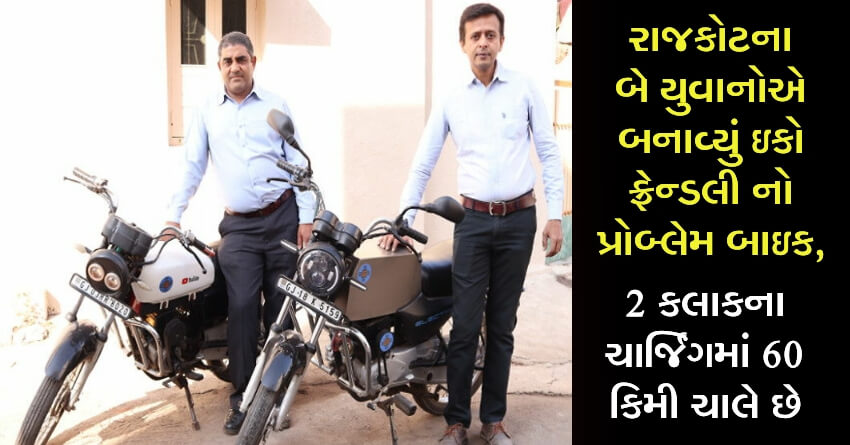રાજકોટના બે યુવાનોએ બનાવ્યું ઇકો ફ્રેન્ડલી નો પ્રોબ્લેમ બાઇક, 2 કલાકના ચાર્જિંગમાં 60 કિમી ચાલે છે