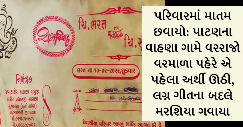 પરિવારમાં માતમ છવાયો: પાટણના વાહણા ગામે વરરાજો વરમાળા પહેરે એ પહેલા અર્થી ઊઠી, લગ્ન ગીતના બદલે મરશિયા ગવાયા