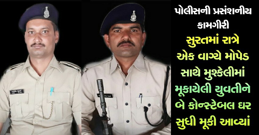 પોલીસની પ્રસંશનીય કામગીરી: સુરતમાં રાત્રે એક વાગ્યે મોપેડ સાથે મુશ્કેલીમાં મૂકાયેલી યુવતીને બે કોન્સ્ટેબલ ઘર સુધી મૂકી આવ્યાં