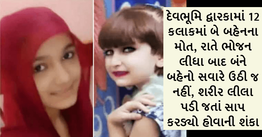 દેવભૂમિ દ્વારકામાં 12 કલાકમાં બે બહેનના મોત, રાતે ભોજન લીધા બાદ સુતેલી બંને બહેનો સવારે ઉઠી જ નહીં, શરીર લીલા પડી જતાં સાપ કરડ્યો હોવાની શંકા