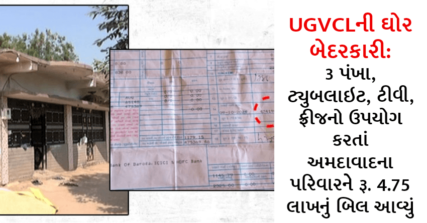 UGVCLની ઘોર બેદરકારી: 3 પંખા, ટ્યુબલાઇટ, ટીવી, ફ્રીજનો ઉપયોગ કરતાં અમદાવાદના પરિવારને રૂ. 4.75 લાખનું બિલ આવ્યું