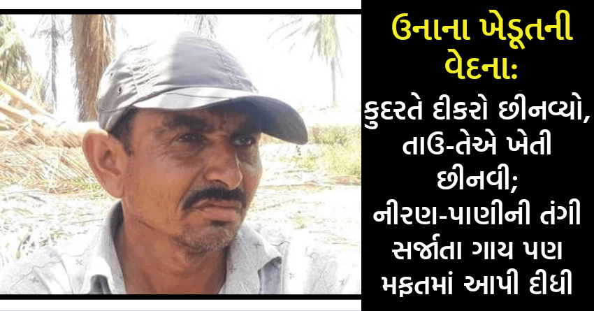 ઉનાના ખેડૂતની વેદના: કુદરતે દીકરો છીનવ્યો, તાઉ-તેએ ખેતી છીનવી; નીરણ-પાણીની તંગી સર્જાતા ગાય પણ મફતમાં આપી દીધી