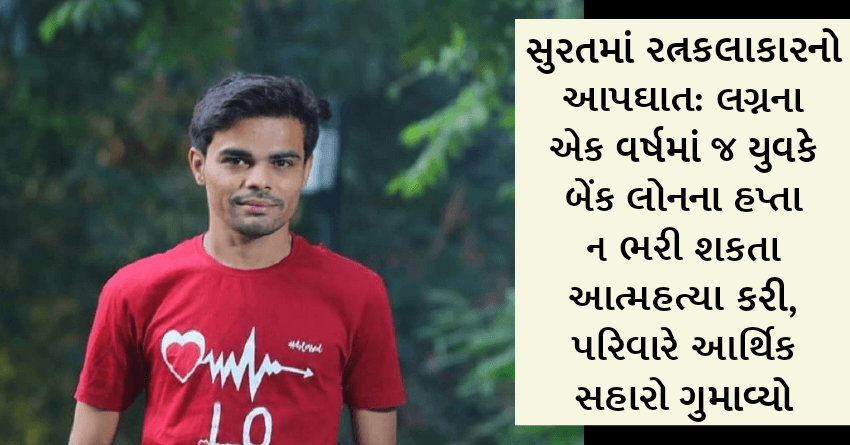 સુરતમાં રત્નકલાકારનો આપઘાત: લગ્નના એક વર્ષમાં જ યુવકે બેંક લોનના હપ્તા ન ભરી શકતા આત્મહત્યા કરી, પરિવારે આર્થિક સહારો ગુમાવ્યો