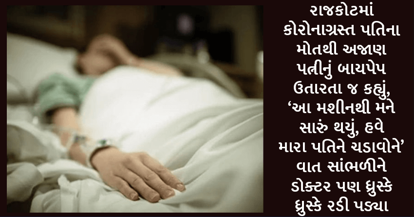રાજકોટમાં કોરોનાગ્રસ્ત પતિના મોતથી અજાણ પત્નીનું બાયપેપ ઉતારતા જ કહ્યું, ‘આ મશીનથી મને સારું થયું, હવે મારા પતિને ચડાવોને’ વાત સાંભળીને ડોક્ટર પણ ધ્રુસ્કે ધ્રુસ્કે રડી પડ્યા