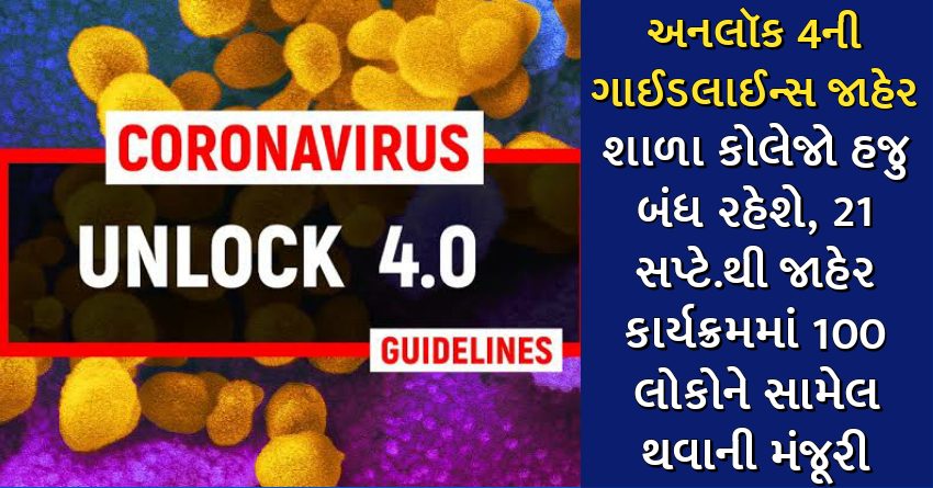 અનલૉક 4ની ગાઈડલાઈન્સ જાહેર : શાળા કોલેજો હજુ બંધ રહેશે, 21 સપ્ટે.થી જાહેર કાર્યક્રમમાં 100 લોકોને સામેલ થવાની મંજૂરી