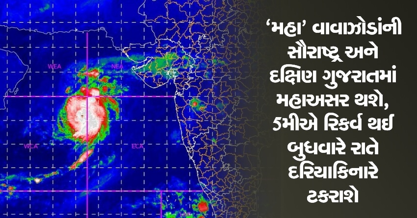 ‘મહા’ વાવાઝોડાંની સૌરાષ્ટ્ર અને દક્ષિણ ગુજરાતમાં મહાઅસર થશે, 5મીએ રિકર્વ થઈ બુધવારે રાતે દરિયાકિનારે ટકરાશે