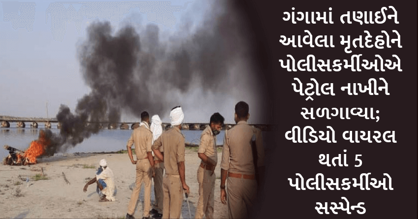 ગંગામાં તણાઈને આવેલા મૃતદેહોને પોલીસકર્મીઓએ પેટ્રોલ નાખીને સળગાવ્યા; વીડિયો વાયરલ થતાં 5 પોલીસકર્મીઓ સસ્પેન્ડ