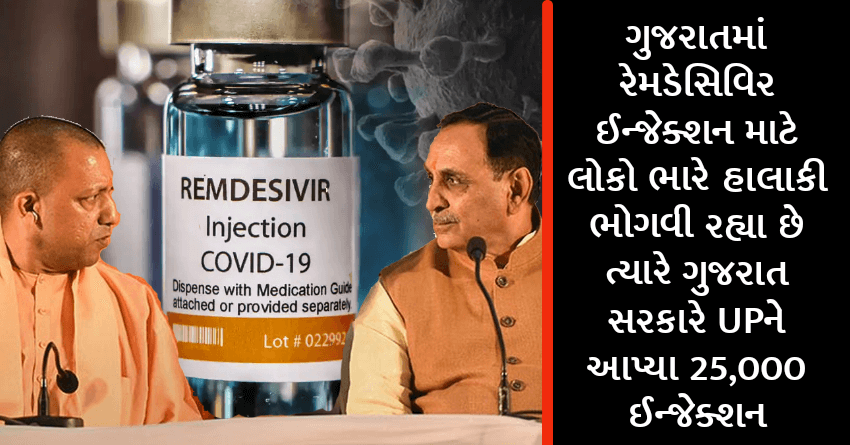 ગુજરાતમાં રેમડેસિવિર ઈન્જેક્શન માટે લોકો ભારે હાલાકી ભોગવી રહ્યા છે ત્યારે ગુજરાત સરકારે UPને આપ્યા 25,000 ઈન્જેક્શન