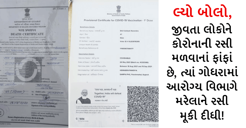 લ્યો બોલો, જીવતા લોકોને કોરોનાની રસી મળવાનાં ફાંફાં છે, ત્યાં ગોધરામાં આરોગ્ય વિભાગે મરેલાને રસી મૂકી દીધી!