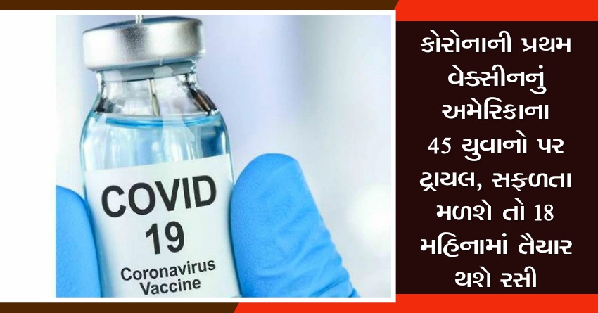 કોરોનાની પ્રથમ વેક્સીનનું અમેરિકાના 45 યુવાનો પર ટ્રાયલ, સફળતા મળશે તો 18 મહિનામાં તૈયાર થશે રસી