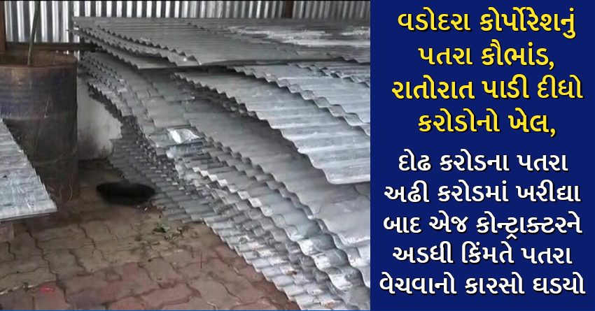 વડોદરા કોર્પોરેશનું પતરા કૌભાંડ, રાતોરાત પાડી દીધો કરોડોનો ખેલ, દોઢ કરોડના પતરા અઢી કરોડમાં ખરીદ્યા બાદ એજ કોન્ટ્રાક્ટરને અડધી કિંમતે પતરા વેચવાનો કારસો ઘડયો