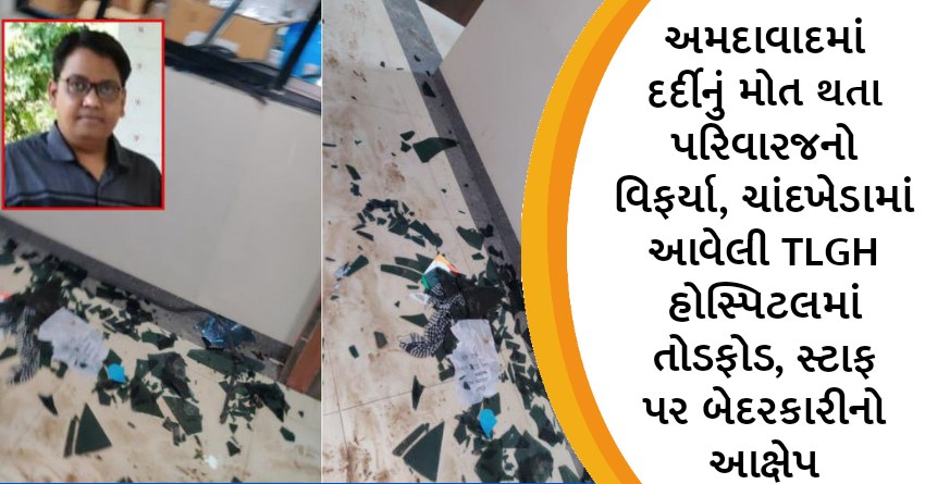 અમદાવાદમાં દર્દીનું મોત થતા પરિવારજનો વિફર્યા, ચાંદખેડામાં આવેલી TLGH હોસ્પિટલમાં તોડફોડ, સ્ટાફ પર બેદરકારીનો આક્ષેપ
