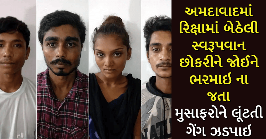 અમદાવાદમાં રિક્ષામાં બેઠેલી સ્વરૂપવાન છોકરીને જોઈને ભરમાઇ ના જતા, મુસાફરોને લૂંટતી ગેંગ ઝડપાઇ