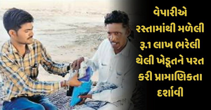 વેપારીએ રસ્તામાંથી મળેલી રૂ.1 લાખ ભરેલી થેલી ખેડૂતને પરત કરી પ્રામાણિકતા દર્શાવી