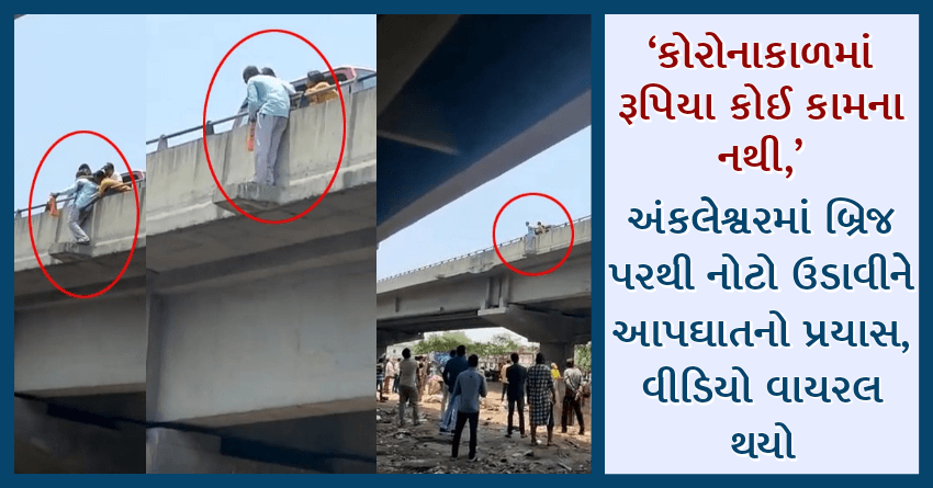 ‘કોરોનાકાળમાં રૂપિયા કોઈ કામના નથી,’ અંકલેશ્વરમાં બ્રિજ પરથી નોટો ઉડાવીને આપઘાતનો પ્રયાસ, વીડિયો વાયરલ થયો