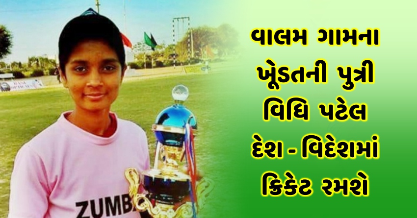વાલમ ગામના ખેૂડતની પુત્રી વિધિ પટેલ દેશ-વિદેશમાં ક્રિકેટ રમશે
