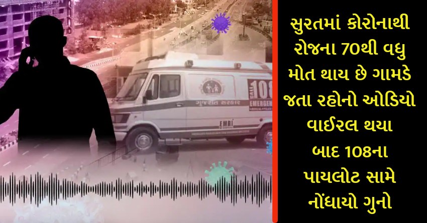 સુરતમાં કોરોનાથી રોજના 70થી વધુ મોત થાય છે ગામડે જતા રહોનો ઓડિયો વાઈરલ થયા બાદ 108ના પાયલોટ સામે નોંધાયો ગુનો