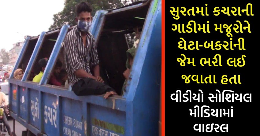 સુરતમાં કચરાની ગાડીમાં મજૂરોને ઘેટા-બકરાંની જેમ ભરી લઈ જવાતા હતા, વીડીયો સોશિયલ મીડિયામાં વાઇરલ