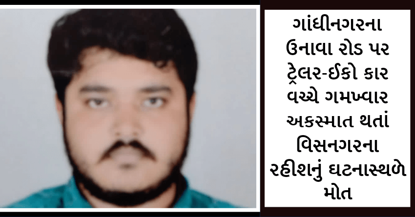ગાંધીનગરના ઉનાવા રોડ પર ટ્રેલર-ઈકો કાર વચ્ચે ગમખ્વાર અકસ્માત થતાં વિસનગરના રહીશનું ઘટનાસ્થળે મોત