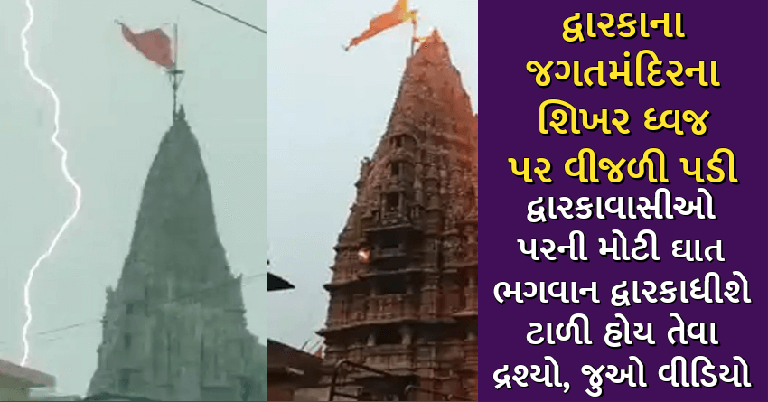 દ્વારકાના જગતમંદિરના શિખર ધ્વજ પર વીજળી પડી, દ્વારકાવાસીઓ પરની મોટી ઘાત ભગવાન દ્વારકાધીશે ટાળી હોય તેવા દ્રશ્યો, જુઓ વીડિયો