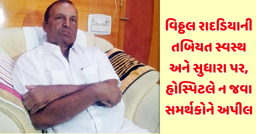 વિઠ્ઠલ રાદડિયાની તબિયત સ્વસ્થ અને સુધારા પર, હોસ્પિટલે ન જવા સમર્થકોને અપીલ
