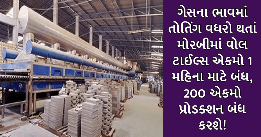 ગેસના ભાવમાં તોતિંગ વધરો થતાં મોરબીમાં વોલ ટાઈલ્સ એકમો 1 મહિના માટે બંધ, 200 એકમો પ્રોડક્શન બંધ કરશે!