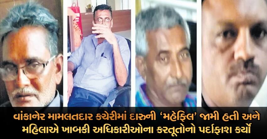વાંકાનેર મામલતદાર કચેરીમાં 1લી તારીખે જામેલી ‘મહેફિલ’ પર નાયબ મામલતદાર ડુંડની પ્રેમિકાએ ખાબકી મહેફિલ માણી રહેલા ડુંડ અને અન્ય એક નાયબ મામલતદાર સહિત પાંચનો વીડિયો ઉતારી અધિકારીઓના કરતૂતોનો પર્દાફાશ કર્યો હતો. ઘટનાના દિવસથી જ ડુંડ રજા મુક્યા વગર અજ્ઞાત સ્થળે નાસી ગયા છે, સમગ્ર ઘટના અંગે તપાસ ચલાવી રહેલા મામલતદારે વચગાળાનો રિપોર્ટ કલેક્ટરને સોંપતા બંને નાયબ અધિકારીઓ સામે ફરજ મોકૂફીના પગલાં તોળાઇ રહ્યા છે.