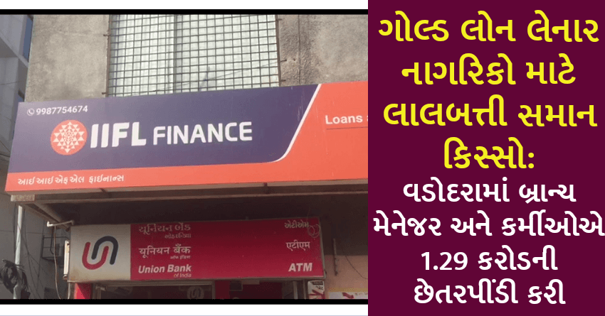 ગોલ્ડ લોન લેનાર નાગરિકો માટે લાલબત્તી સમાન કિસ્સો: વડોદરામાં બ્રાન્ચ મેનેજર અને કર્મીઓએ 1.29 કરોડની છેતરપીંડી કરી