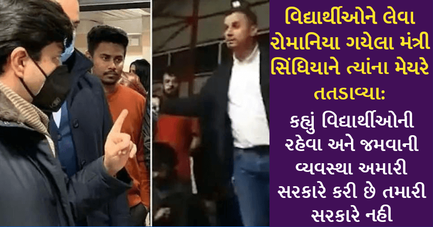 વિદ્યાર્થીઓને લેવા રોમાનિયા ગયેલા મંત્રી સિંધિયાને ત્યાંના મેયરે તતડાવ્યા: કહ્યું વિદ્યાર્થીઓની રહેવા અને જમવાની વ્યવસ્થા અમારી સરકારે કરી છે તમારી સરકારે નહી
