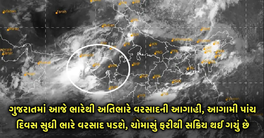 ગુજરાતમાં આજે ભારેથી અતિભારે વરસાદની આગાહી, આગામી પાંચ દિવસ સુધી ભારે વરસાદ પડશે, ચોમાસું ફરીથી સક્રિય થઈ ગયું છે