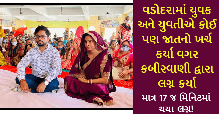 વડોદરામાં યુવક અને યુવતીએ કોઈ પણ જાતનો ખર્ચ કર્યા વગર કબીરવાણી દ્વારા લગ્ન કર્યા, માત્ર 17 જ મિનિટમાં થયા લગ્ન!