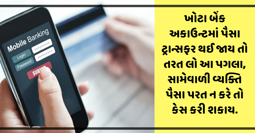 ઘણીવાર બેંક એકાઉન્ટમાં પૈસા ટ્રાન્સફર કરતી વખતે ભૂલથી બેંક અકાઉન્ટ નંબર ખોટો નાખવાથી પૈસા ખોટા અકાઉન્ટમાં ટ્રાન્સફર થઈ જાય છે. ઈન્ટરનેટ બેંકિંગના વધતા ચલણના કારણે આ પ્રકારની સમસ્યાઓ વધી રહી છે. ઘણા લોકોને એ વાતની જાણકારી જ નથી હોતી કે ખોટા ખાતામાં પૈસા ટ્રાન્સફર થઈ જાય તો શું કરવું જોઇએ અને આ પૈસા કેવી રીતે પાછા મેળવી શકાય? તો ચાલો આજે જાણી લઇએ કે આપણી સાથે આવું થયું તો પૈસાનું નુકસાન થતું રોકવા શું કરવું જોઇએ.