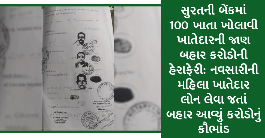 નવસારીમાં રહેતી એક મહિલાને લોનની જરૂર હોવાથી ટાવર વિસ્તારમાં આવેલી એક બેંકમાં ગયા હતા. તેમના દસ્તાવેજો જોતા બેંકના અધિકારીએ જણાવ્યું કે તમારા નામે સુરતની બેંકમાં ખાતું છે અને તેમાં સવા કરોડથી વધુ રૂપિયા જમા છે તો લોન શા માટે લો છો ? આ મહિલાએ જણાવ્યું કે અમારું ખાતું નથી, ત્યારબાદ દસ્તાવેજો ચેક કર્યા બાદ 10 વર્ષ અગાઉ કોઈને ડોક્યુમેન્ટ આપ્યા હોવાનું આ મહિલાએ જણાવતા કૌભાંડ ખૂલ્યું હતું.