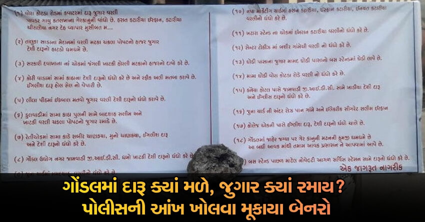 ગોંડલમાં દારૂ ક્યાં મળે, જુગાર ક્યાં રમાય? પોલીસની આંખ ખોલવા મૂકાયા બેનરો
