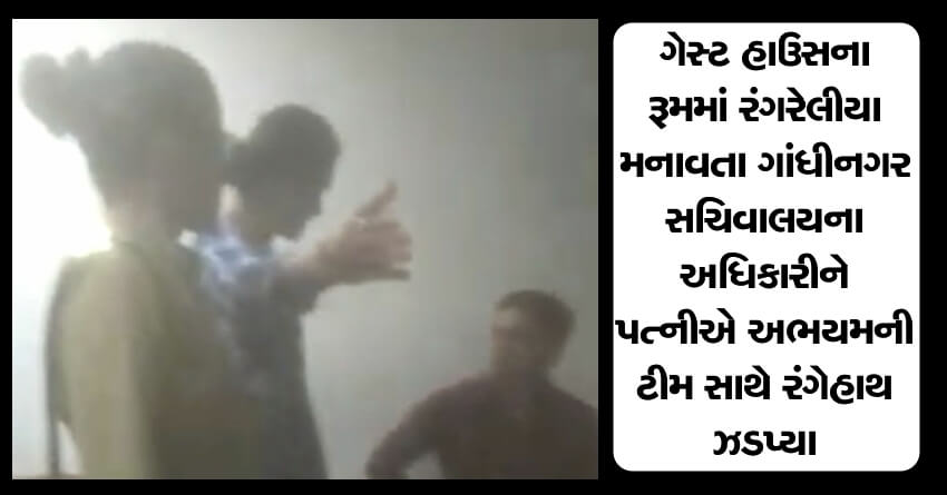 ગેસ્ટ હાઉસના રૂમમાં રંગરેલીયા મનાવતા ગાંધીનગર સચિવાલયના અધિકારીને પત્નીએ અભયમની ટીમ સાથે રંગેહાથ ઝડપ્યા
