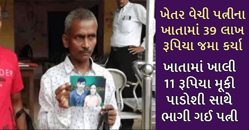ખેતર વેચી પત્નીના ખાતામાં 39 લાખ રૂપિયા જમા કર્યા, ખાતામાં ખાલી 11 રૂપિયા મૂકી પાડોશી સાથે ભાગી ગઈ પત્ની