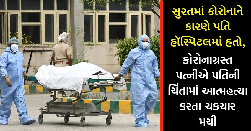 સુરતમાં કોરોનાને કારણે પતિ હૉસ્પિટલમાં હતો, કોરોનાગ્રસ્ત પત્નીએ પતિની ચિંતામાં આત્મહત્યા કરતા ચકચાર મચી