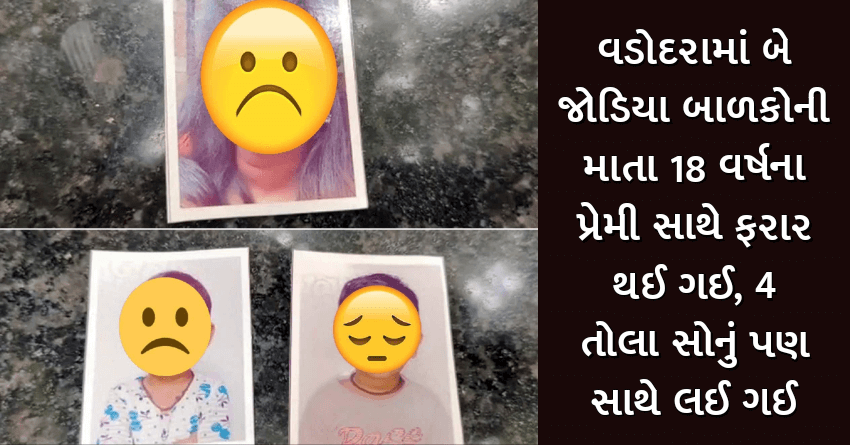 વડોદરામાં બે જોડિયા બાળકોની માતા 18 વર્ષના પ્રેમી સાથે ફરાર થઈ ગઈ, 4 તોલા સોનું પણ સાથે લઈ ગઈ
