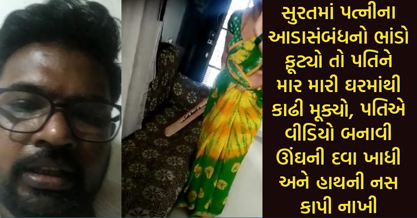 સુરતમાં પત્નીના આડાસંબંધનો ભાંડો ફૂટ્યો તો પતિને માર મારી ઘરમાંથી કાઢી મૂક્યો, પતિએ વીડિયો બનાવી ઊંઘની દવા ખાધી અને હાથની નસ કાપી નાખી