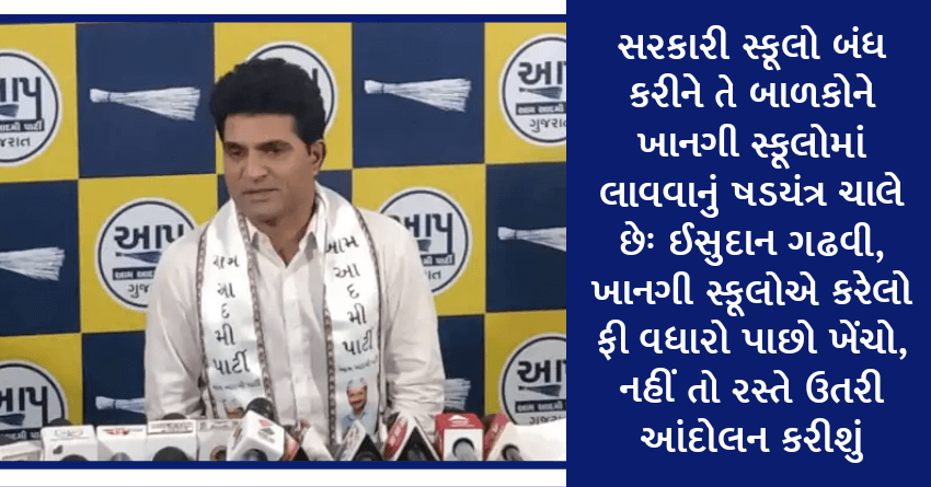 સરકારી સ્કૂલો બંધ કરીને તે બાળકોને ખાનગી સ્કૂલોમાં લાવવાનું ષડયંત્ર ચાલે છેઃ ઈસુદાન ગઢવી, ખાનગી સ્કૂલોએ કરેલો ફી વધારો પાછો ખેંચો, નહીં તો રસ્તે ઉતરી આંદોલન કરીશું